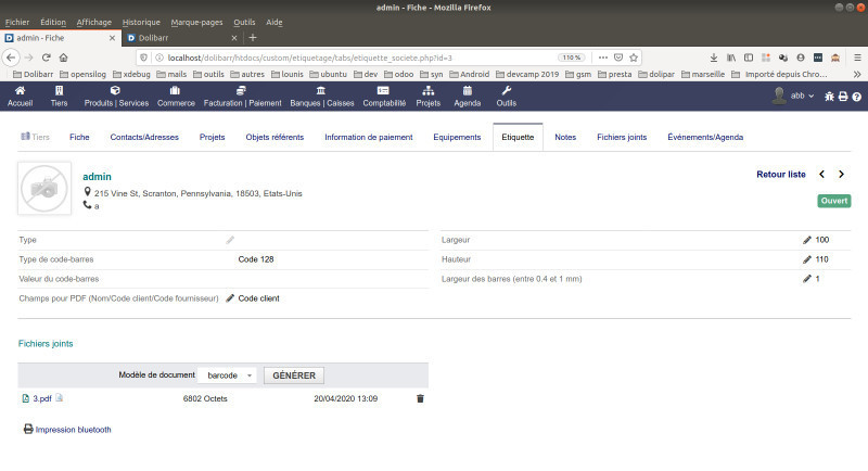 The labeling module makes it possible to create configurable labels with barcode by unit for products and equipment, warehouses and customers for labelers by unit connected to a PC through wired or wireless communication but also for bluetooth labellers connectable to or integrated into a phone or PDA such as the Sunmi PDA.
