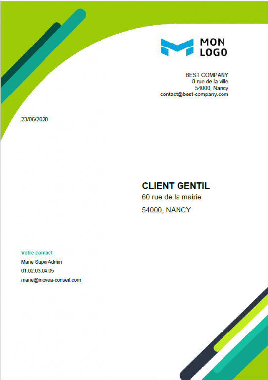 This module allows you to automatically generate a complete commercial offer, by compiling the various attached PDF documents and the estimate itself. You can also add a summary, your Terms Of Sale and present everything with a graphic charter applied to all pages.