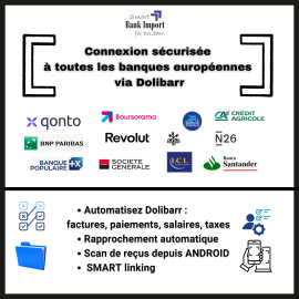 Advanced workflow management. Automate the creation of monetary deposits and associate these deposits with the final invoice. Centralized management of extrafields: creation, duplication, modification and deletion of several attributes at the same time depending on the propagation channels, trash mode (hide without deleting), compatibility test with Dolibarr 20, and more!