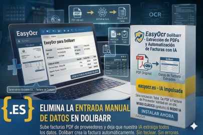 Verarbeitung von Lieferantenrechnungen in Dolibarr mit KI-OCR. Kostenloser klassischer Modus (PDF.js) + erweiterter KI-Modus mit easyocr.es-Abonnement für vollautomatische Batch-Verarbeitung.