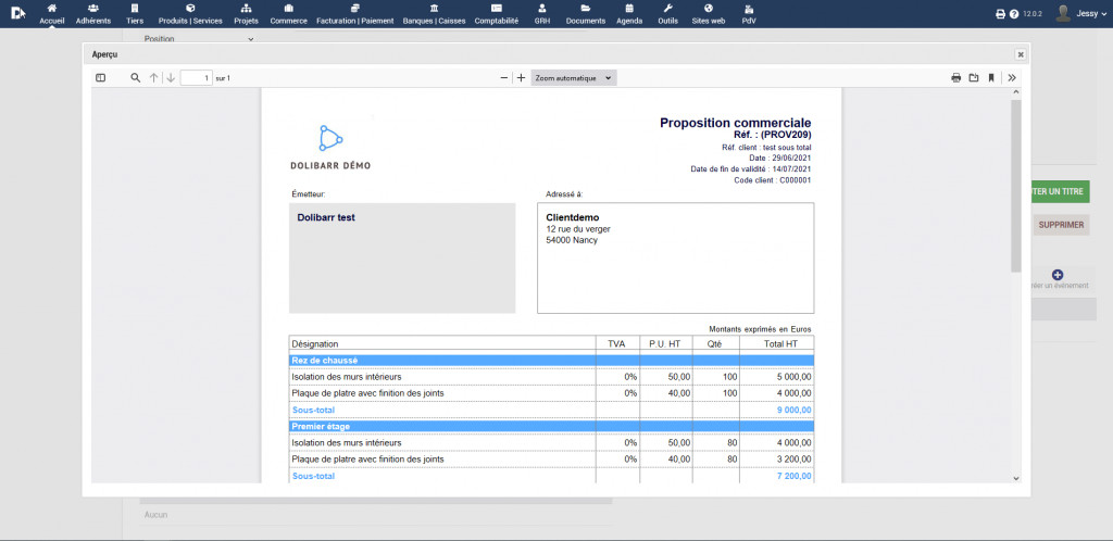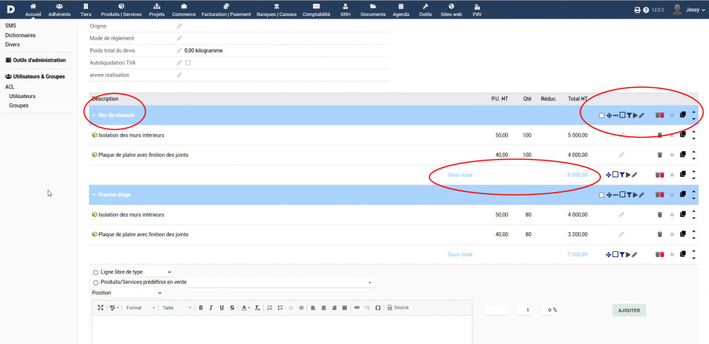 Le module dolibarr Sous Total, permet d’intégrer facilement des sous totaux sur vos devis, commande et facture client et commandes et factures fournisseurs