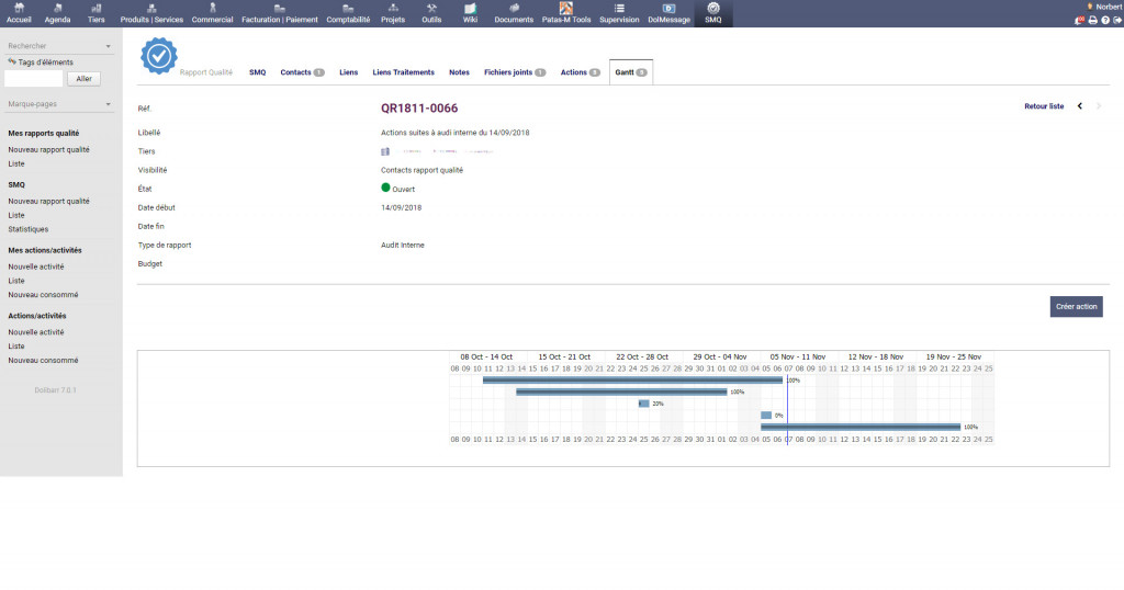 The Taskin module thus manages the tasks and provides them to other modules like SMQ (missing object in Dolibarr)