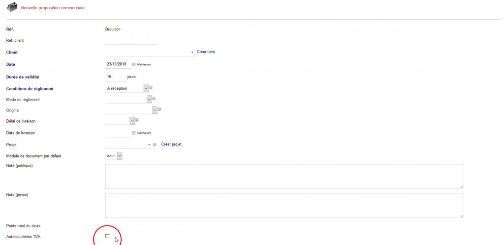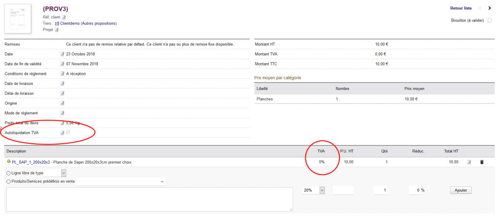 • Le module dolibarr « Autoliquidation de la TVA » vous permet d’ajouter facilement sur vos devis et vos factures les mentions obligatoires et relatives à la sous traitance. • Le taux de TVA des produits et des services ajoutés passe automatiquement à 0%. • Module compatible avec la majorité des modèles de documents devis et factures de dolibarr