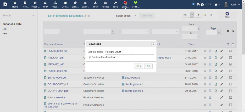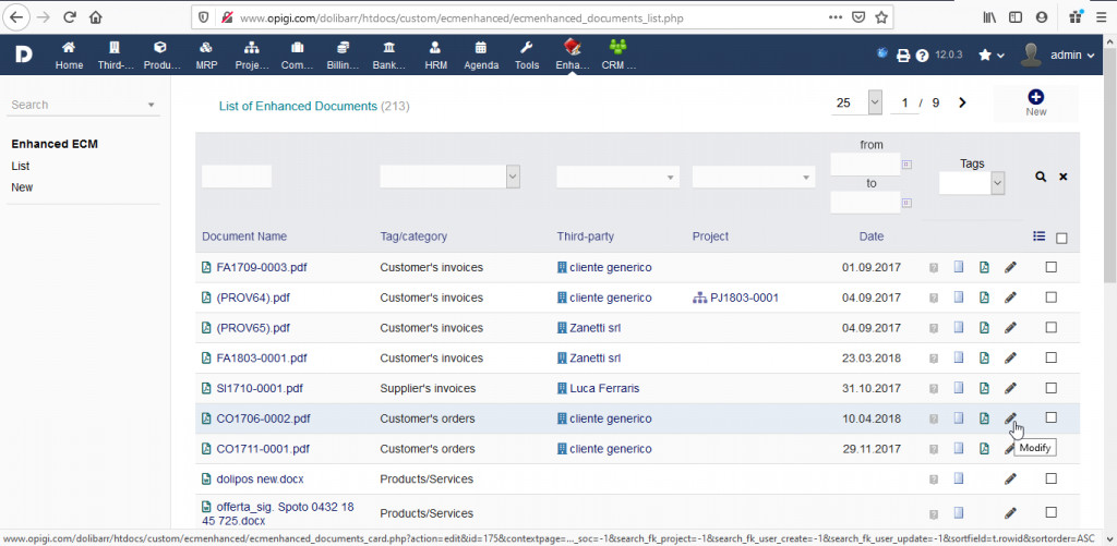 Étend la fonctionnalité de Documents Comme ceci, permet de télécharger les documents, mais ici peuvent être classés en catégories et associés à des tags Chaque document est, au moment de création, stocké dans la base et classé Comprend un moteur de recherche, qui permet des filtres de recherche de documents, et la possibilité d'opérations massives sur des groupes de documents