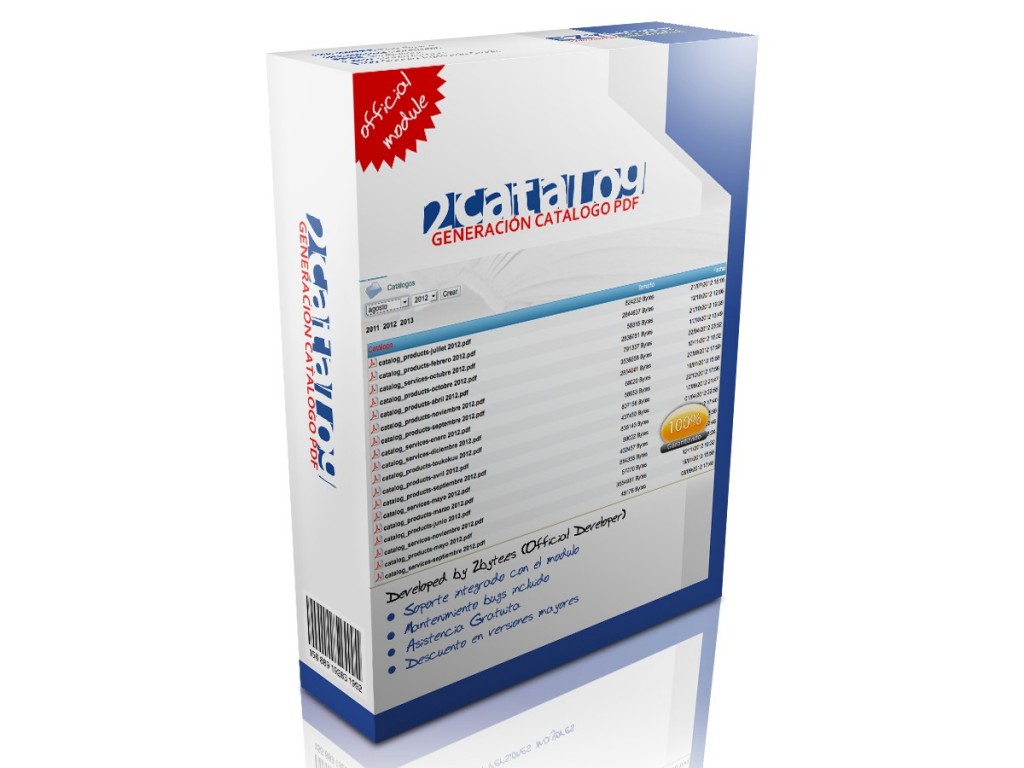 Generates a PDF catalog of products and services contained in Dolibarr. Allows management of catalogs by month and year, and more ...