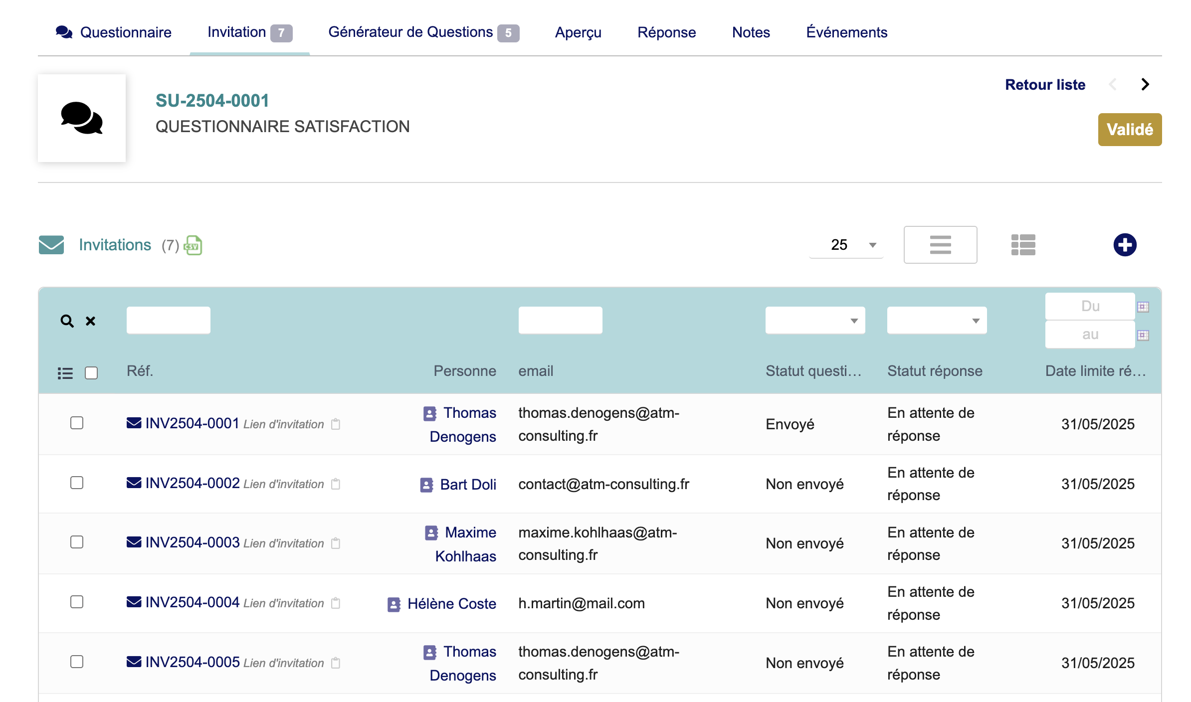 Créez et gérez facilement des questionnaires personnalisés. Intégré directement à l’interface Dolibarr, il facilite la collecte et l’analyse des réponses. Idéal pour les évaluations internes, les retours clients ou les enquêtes de satisfaction. Compatible avec le module Agefodd pour une gestion complète des formations.