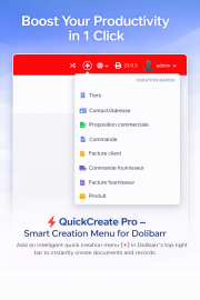 Agrega un botón de creación rápida moderno (+) en la barra superior de Dolibarr para crear al instante tus documentos y fichas.