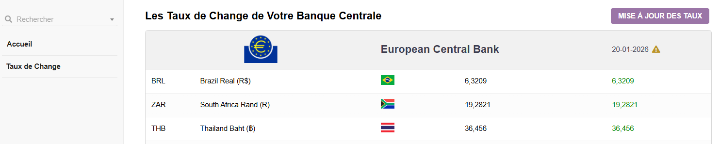 Dieses Modul bietet die Möglichkeit, Wechselkurse mit den Daten der Zentralbank zu synchronisieren.