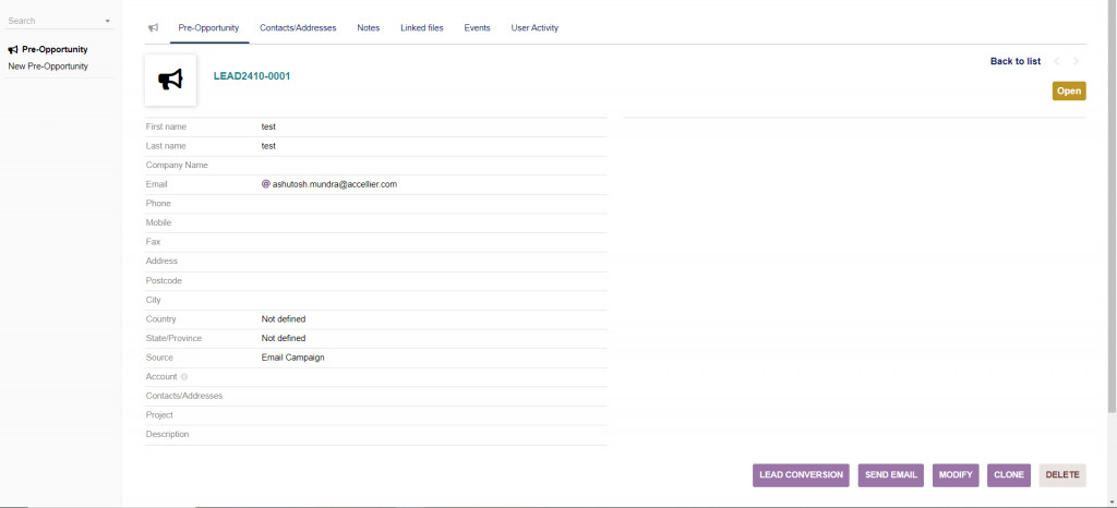 Sales team will not like to clutter their list of Customer & Prospects with this list or dump of suspects, hence they prefer to keep the list of suspects separately. To resolve this practical challenge faced by Sales team we have come up with this Pre-Opportunity module.