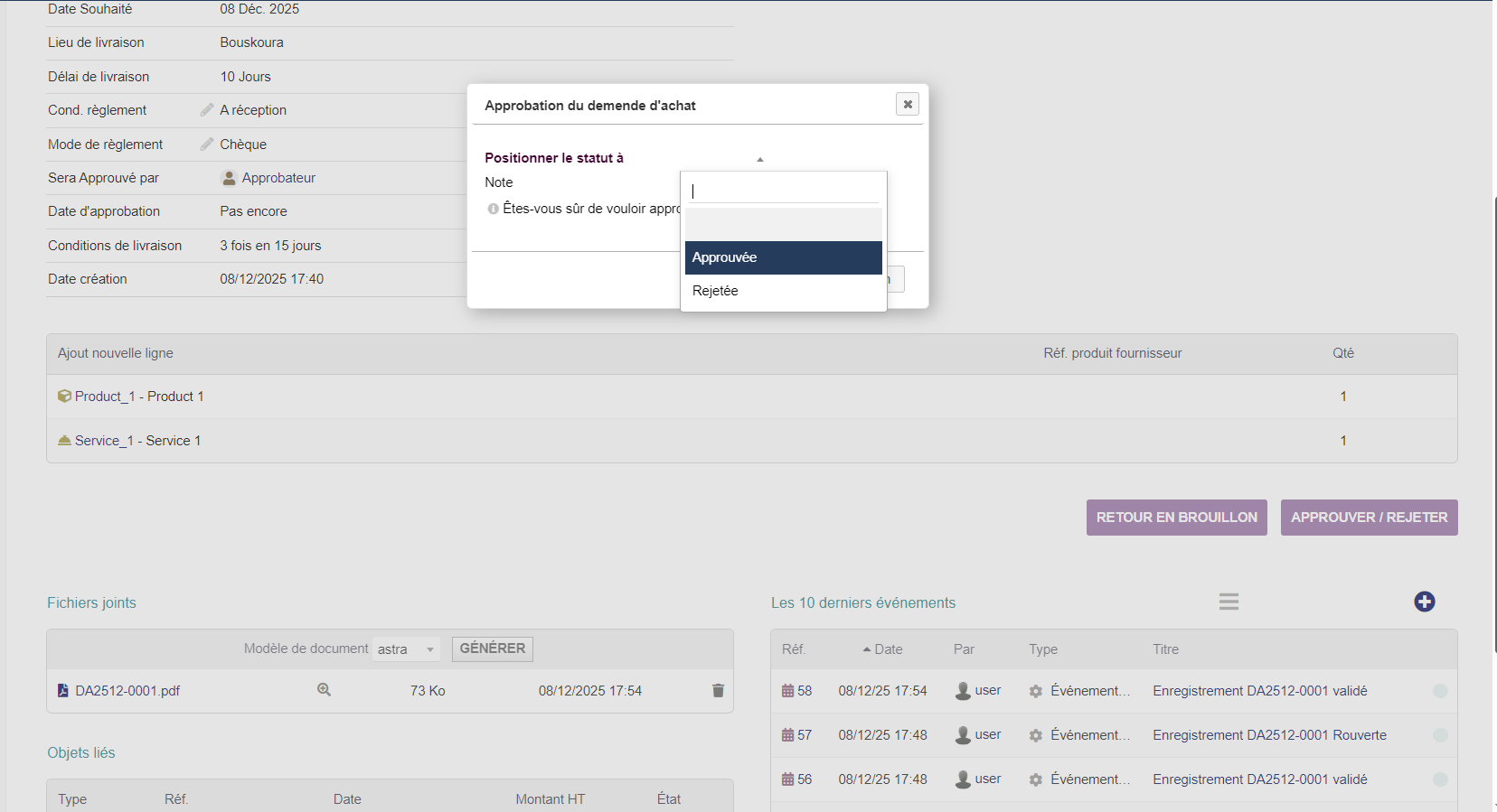 Each approver can validate or refuse the request, with clear status changes.