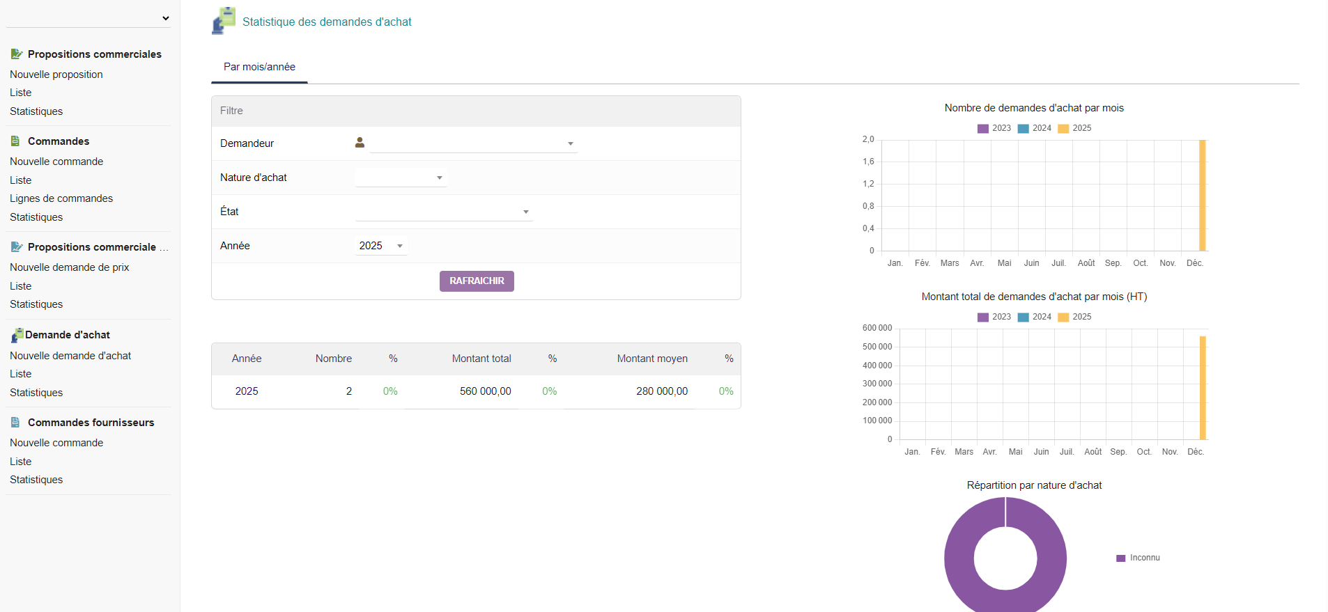 Global view of purchase requests: number of requests, statuses, amounts and progress.