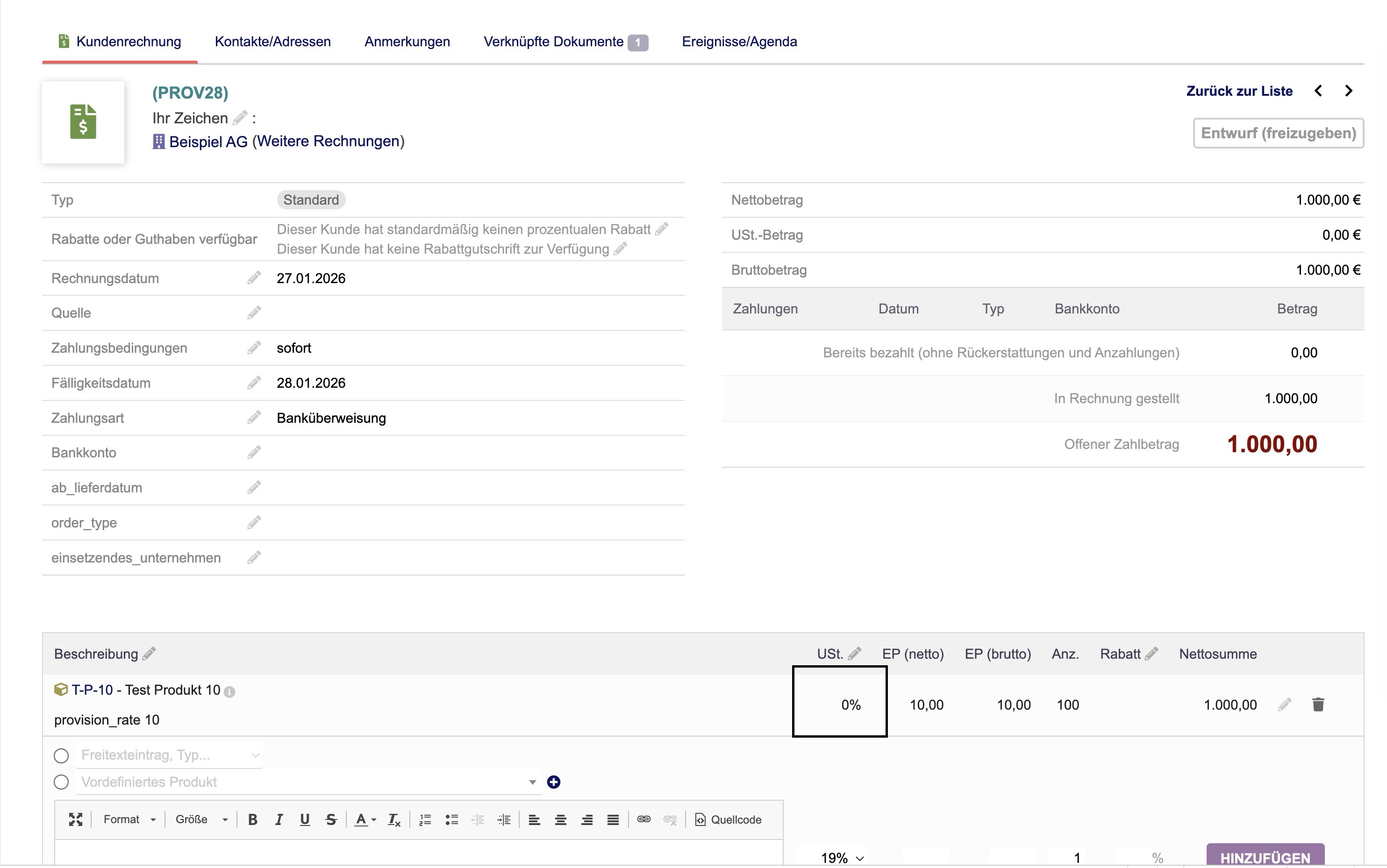 Automatically sets 0% VAT on invoices and proposals for tax-exempt customers. No manual intervention required.