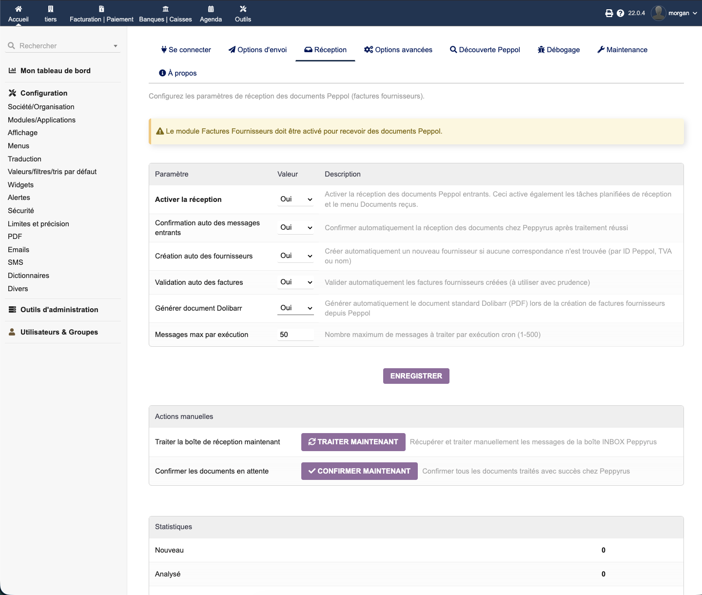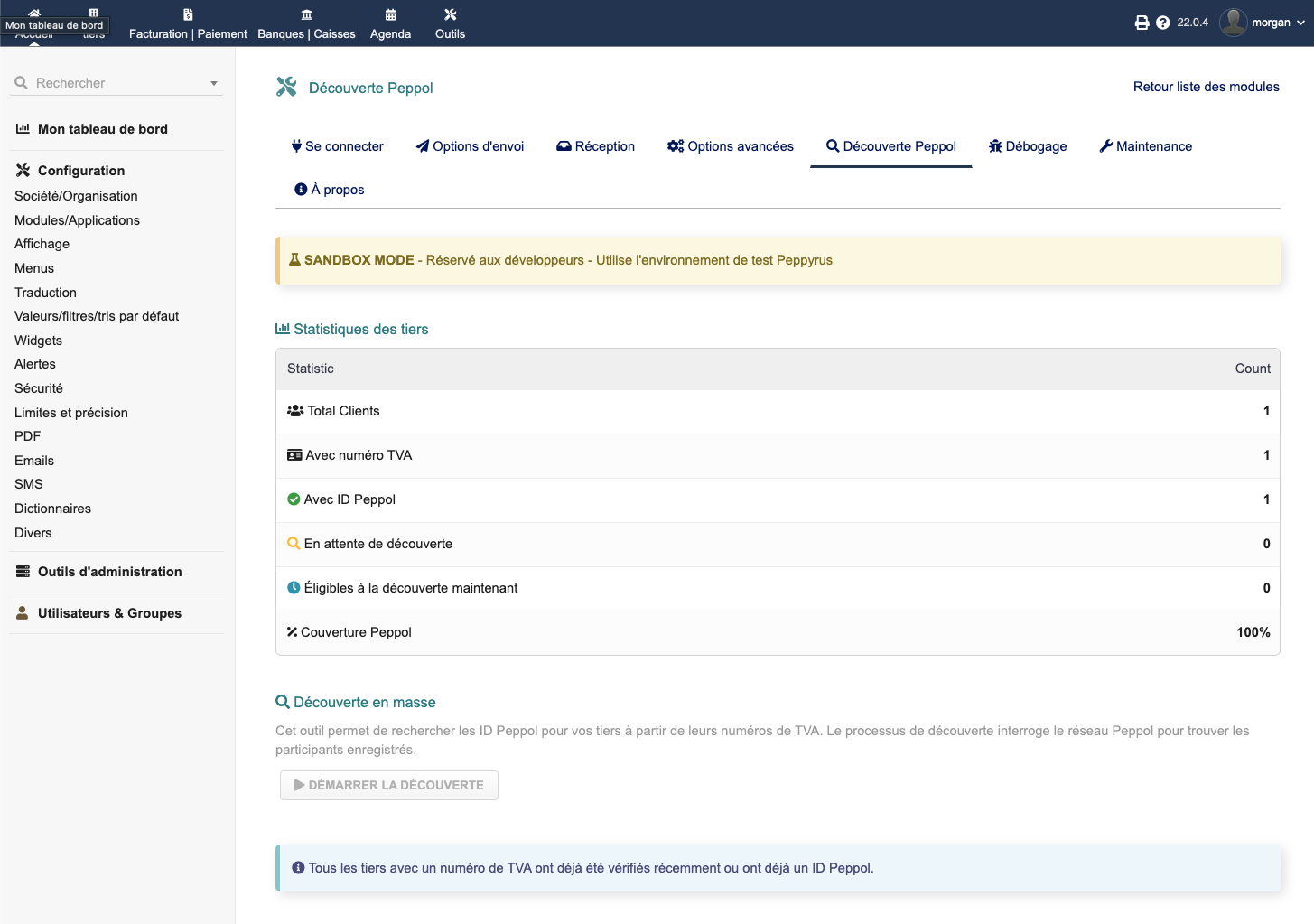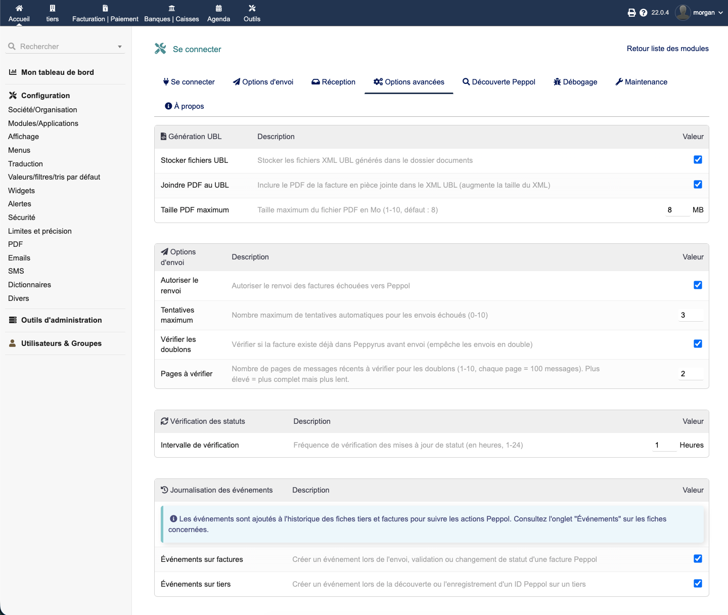 Senden und empfangen Sie elektronische Rechnungen über das Peppol-Netzwerk direkt aus Dolibarr. EU-konformes UBL/BIS 3.0-Format, automatische Peppol-ID-Erkennung, Echtzeit-Zustellverfolgung.