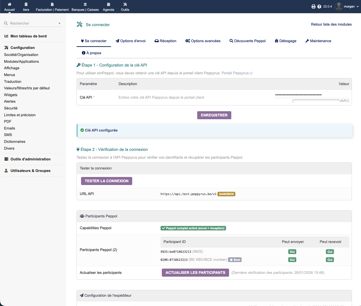 Keine Versandkosten — unbegrenzte Peppol-Rechnungen! EM Peppol nutzt Peppyrus (von Unifiedpost) als Access Point. Erstellen Sie einfach einen kostenlosen API-Schlüssel auf peppyrus.be und versenden und empfangen Sie Rechnungen im Peppol-Netzwerk ohne zusätzliche Kosten und ohne Volumenbegrenzung. Peppyrus bietet derzeit kostenlosen Zugang zum Peppol-Netzwerk und hat angekündigt, dass dies so bleiben soll. Sie zahlen nur für dieses Modul — das Peppol-Netzwerk selbst ist kostenlos.