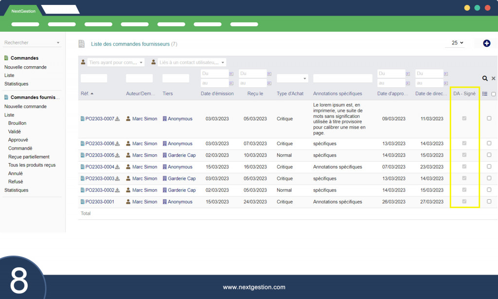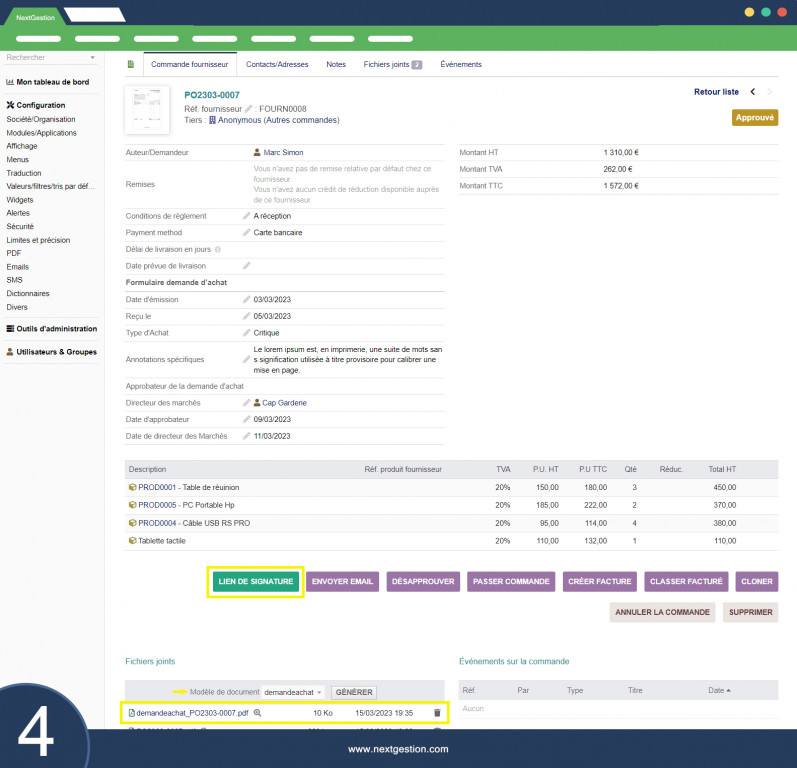 Kaufanfrage für Dolibarr Das Purchase Request Module ist ein Einkaufsmanagement-Tool, das es Unternehmen ermöglicht, den Einkaufsprozess zu vereinfachen und zu automatisieren, indem Kaufanfragen, Genehmigungen, Lieferantenbestellungen und die Nachverfolgung von Einkäufen zentralisiert und optimiert werden. Hier sind die Hauptfunktionen dieses Moduls: DA-Anfrage über Kaufanfrageformular einreichen: Mit dieser Funktion können Benutzer eine Kaufanfrage (DA) über ein spezielles Formular einreichen. Dieses Formular enthält normalerweise Felder zur Eingabe von Informationen zu benötigten Artikeln, Mengen, gewünschten Lieferterminen und anderen relevanten Informationen. Kaufanfrage aus Bestellung validieren und genehmigen: Mit dieser Funktion können Manager oder autorisierte Teammitglieder eingereichte Kaufanfragen überprüfen, validieren und genehmigen. Nach der Genehmigung können RFQs in Bestellungen umgewandelt werden, um mit dem nächsten Schritt im Kaufprozess fortzufahren. Unterschreiben Sie die Kaufanfrage elektronisch: Mit der elektronischen Signatur können autorisierte Benutzer Kaufanfragen offiziell genehmigen, indem sie dem Dokument ihre digitale Signatur hinzufügen. Dies stellt die Authentizität der Genehmigung sicher und bietet einen klaren Prüfpfad für Transaktionen. Signierte Bestellanforderung im PDF-Format erstellen: Mit dieser Funktion können Benutzer eine PDF-Datei der genehmigten und elektronisch signierten Bestellanforderung erstellen. Diese Datei kann mit Lieferanten und Teammitgliedern geteilt und zu Compliance- und Prüfzwecken gespeichert werden. Bestellanforderungen mit Bestellungen verknüpfen: Mit dieser Funktion können Benutzer genehmigte Bestellanforderungen mit entsprechenden Bestellungen verknüpfen. Dies erleichtert die Nachverfolgung bestellter Artikel und stellt sicher, dass alle Kaufanfragen ordnungsgemäß dokumentiert und mit Bestellungen verknüpft werden. Teillieferantenbestellungen mit globalen Lieferantenbestellungen verknüpfen: Mit dieser Funktion können Benutzer Lieferantenbestellungen verwalten, die aus mehreren Teillieferungen bestehen. Teilbestellungen können mit der Gesamtbestellung verknüpft werden, was die Verwaltung, Nachverfolgung und den Empfang bestellter Waren erleichtert. Diese Funktionalitäten des Kaufanfragemoduls zielen darauf ab, den Kaufprozess zu vereinfachen und zu automatisieren und so eine bessere Kommunikation, effektive Nachverfolgung und mehr Transparenz für die beteiligten Teams zu gewährleisten.