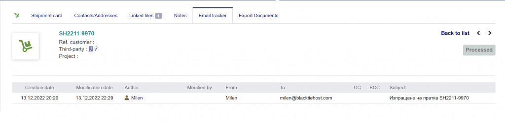 Track email activity for customer's offer, order and invoice and suppliers request, purchase order and invoice