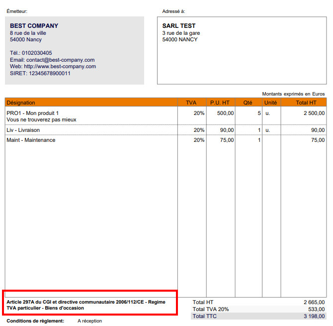 This module allows the companies concerned to apply the VAT on the margin (used goods, objects of Art and Antiques).