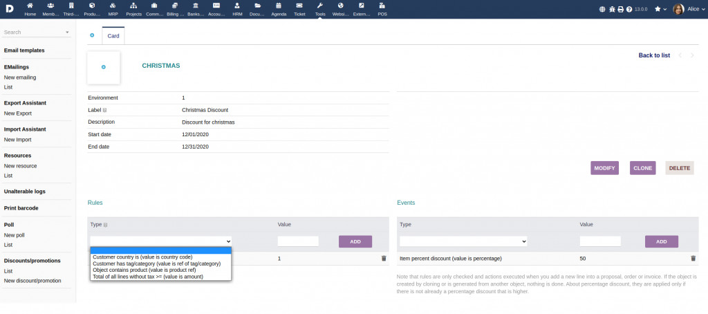 Manage discounts according to advanced rules (customer categories, presence of products, quantity reached or not...)