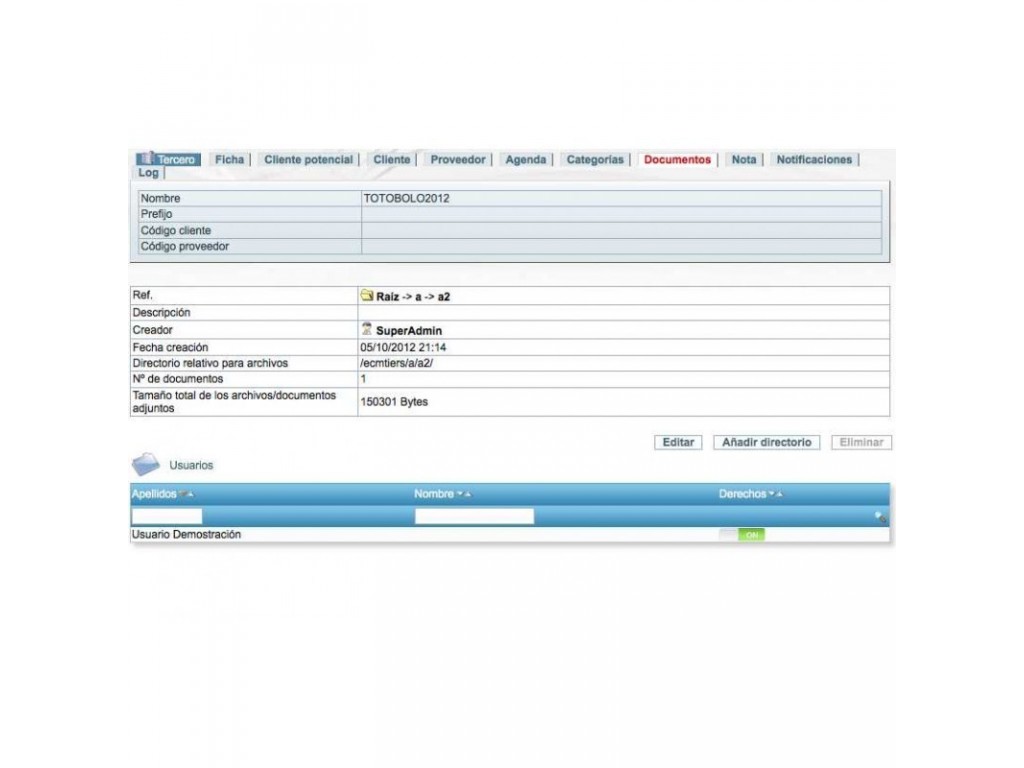 With this module you can manage digital documents (. Doc,. Xls,. Odt,. Jpg,.) Of your customers in an orderly manner, and above all in a safe, as the added functionality of document protection , will manage access permissions, in a comfortable and easy.