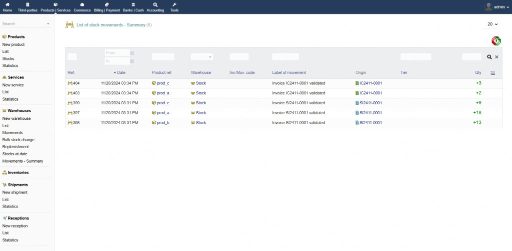 This module simplifies stock movement tracking by combining multiple entries into one line, grouped by origin. It includes returned quantities in the summary, giving a clear and easy-to-read overview of inventory changes.