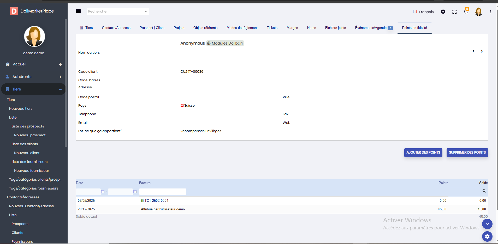 FidelityRewards le permite configurar un programa de fidelización eficaz para recompensar a sus clientes en función de sus compras en Dolibarr ERP & CRM. Este módulo le permite asignar automáticamente puntos de fidelidad a sus clientes, ya sea en facturas estándar o a través del punto de venta TakePOS.