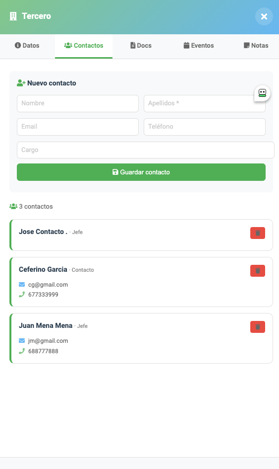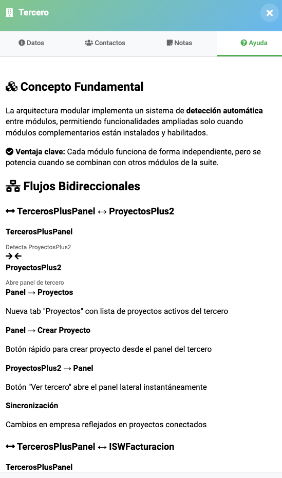🚀 NEW IN VERSION 2.0.0 (Feb 2026) ProyectosPlus Integration: Full synergy between third parties and projects. Dynamic Menu: Conditional access to projects menu (only if ProyectosPlus is active). Third-Party Filters: Project listings filtered directly from the third-party card. Direct Access: Quick links to ProyectosPlus Wizard and Kanban. Performance: Optimized loading on listings and improved visualization.