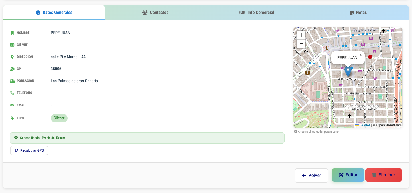 Interactive Maps: Leaflet-powered visualization with custom markers by type (customer, prospect, supplier) and automatic clustering. Pro Dashboard: Visual geocoding statistics, tracking, and quick access shortcuts. Modern Design: 100% responsive interface, Font Awesome icons, and optimized CSS with gradients.