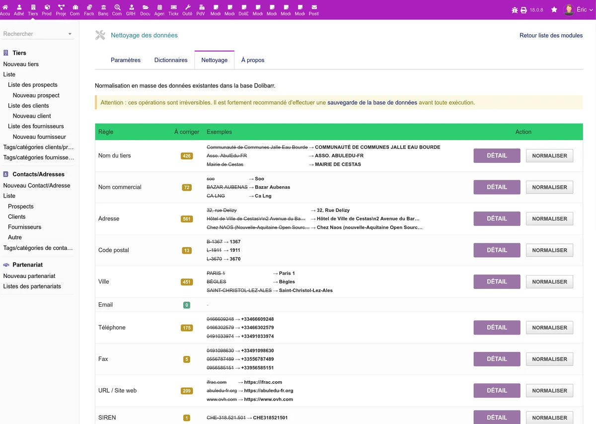 CapNormalize normaliza automáticamente los datos introducidos en las fichas de terceros y contactos de Dolibarr. Garantiza una base de datos limpia y homogénea.