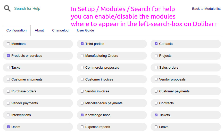 Nachdem ich nun einige Jahre damit verbracht habe, Module in Dolistore zu entwickeln und zu verkaufen (siehe Liste unten), kam mir die Idee zu diesem "kleinen Modul", das SEHR MIT DER COMMUNITY VERBUNDEN ist, und ich dachte, es wäre eine gute Idee, es der COMMUNITY ALS DANK für all die Kollegen zu SCHENKEN, die jede Woche die offiziellen Foren mit ihren Beiträgen für andere bereichern, um anderen zu helfen, ihre Probleme bei der Installation oder Nutzung von Dolibarr zu lösen.