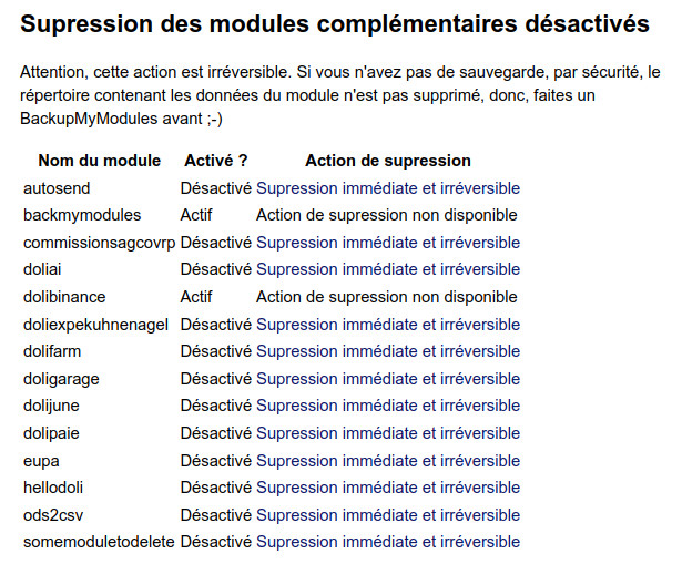 BackMyModules está exclusivamente destinado a administradores de Dolibarr. Solo los usuarios con derechos de administrador pueden acceder a las funcionalidades de respaldo y eliminación de módulos.