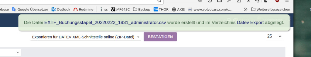 Die exportierten Dateien können sofort heruntergeladen werden oder nachträglich unter "Dokumente" im Verzeichnis "Datev Export".