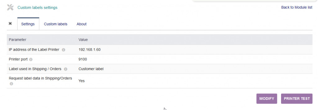 The "Custom Labels" module allows you to define labels relating to products and then print them on thermal printers.