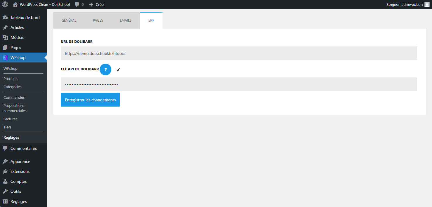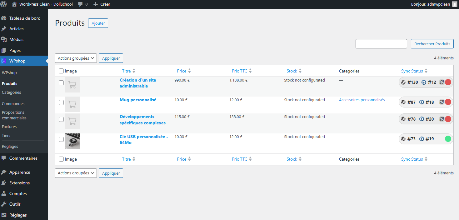 DoliWPSHOP is a connector between the ERP/CRM Dolibarr and the Wordpress E-commerce plugin WP Shop developed by the company Eoxia.