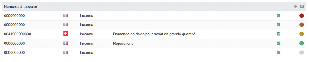 - Ajouter un motif pour chaque appel et une date de rappel pour chaque numéro