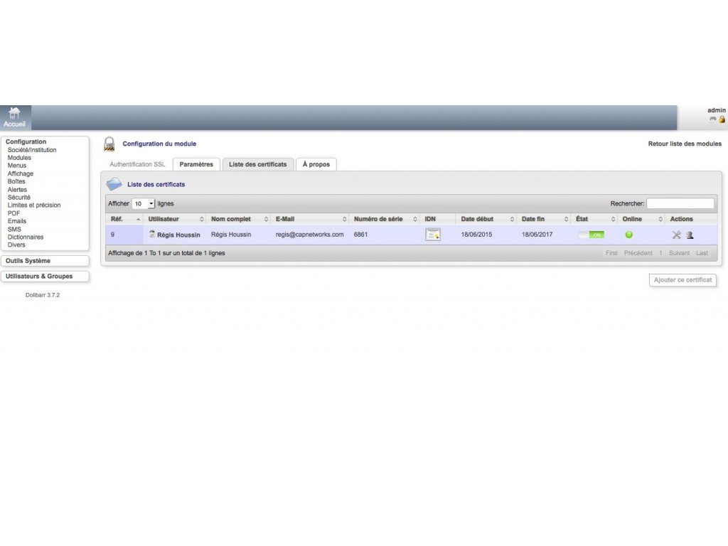 Questo modulo consente di associare uno o più certificati SSL per proteggere e automatizzare la connessione a Dolibarr. Si può lavorare con i certificati certificati da un'autorità di certificazione, o auto-firmato.