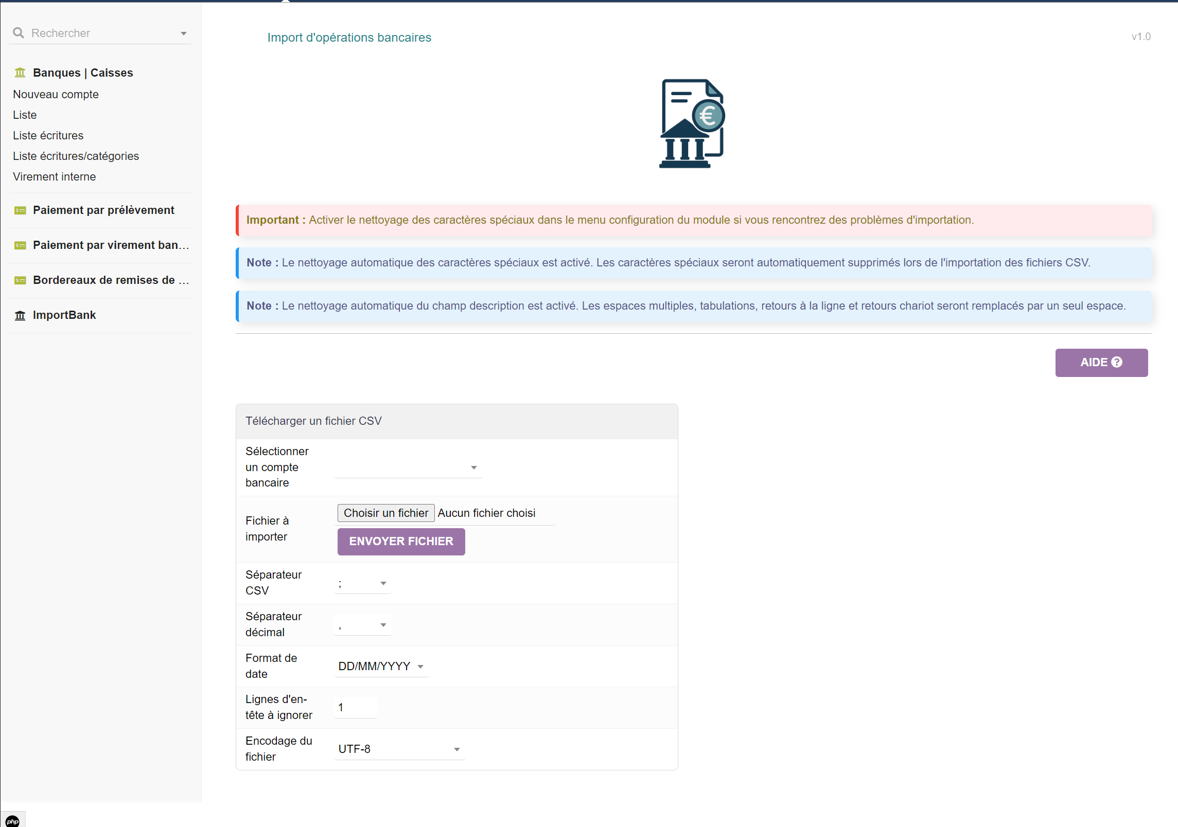 - Prise en charge de divers formats CSV provenant de différentes institutions bancaires
