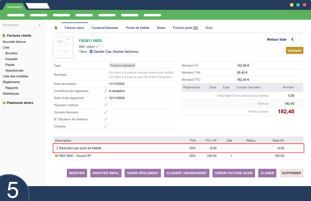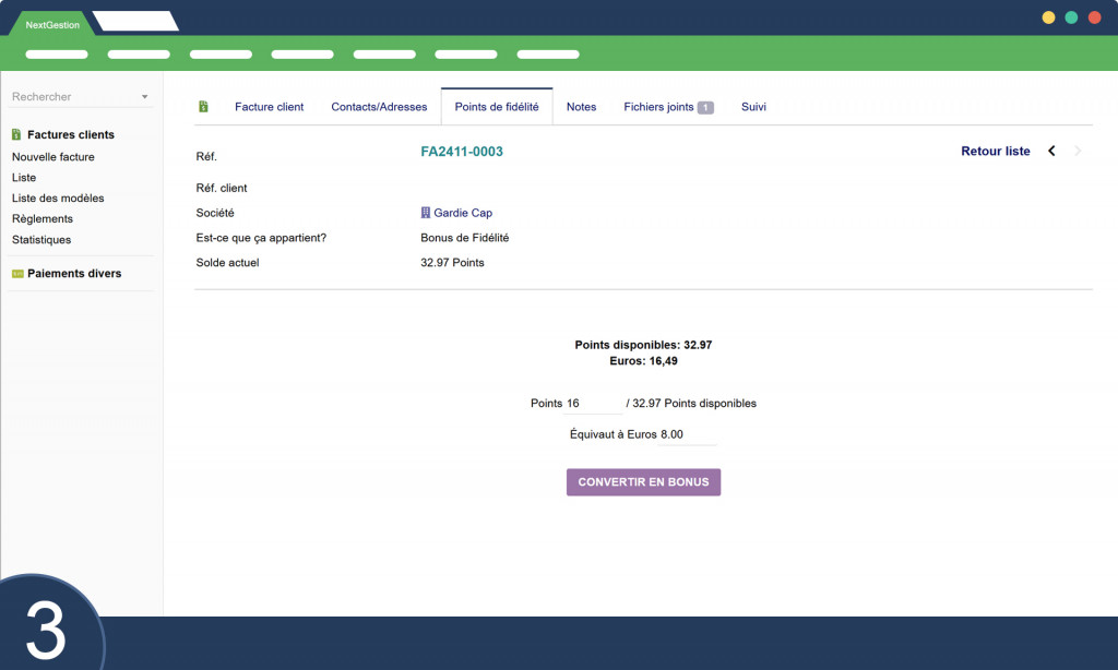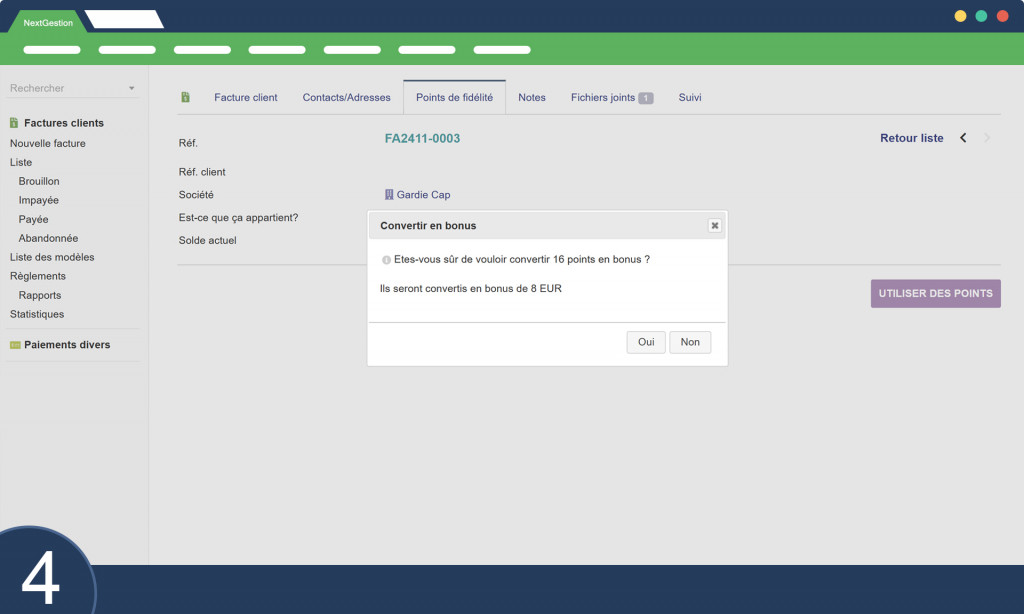Punti Fedeltà Il modulo Punti Fedeltà per Dolibarr è pensato per rafforzare la fidelizzazione dei clienti offrendo sconti in base all'accumulo di punti. A differenza dei sistemi tradizionali dove si utilizzano i punti per ridurre l'importo della fattura, questo modulo permette di generare sconti specifici, gestibili come prodotti per un monitoraggio ottimale delle riduzioni concesse.