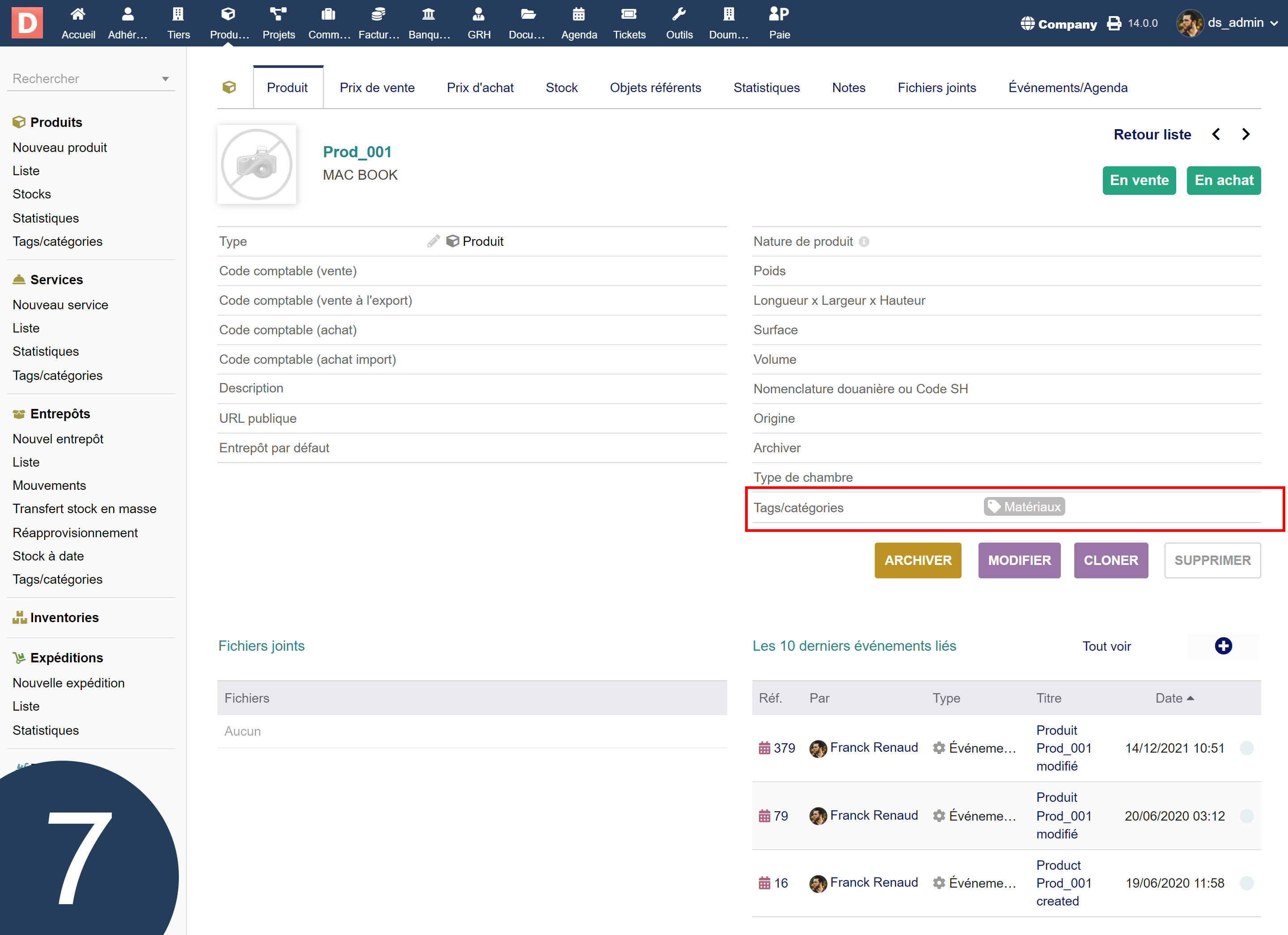 KreaProducts extends Dolibarr Products with nutrition & allergen calculation, BOM/technical sheets, where-used analysis, and automatic cost roll-up for accurate food cost. It also improves stock accuracy by posting supplier entries by invoice/receipt date and inventories by value date. Supports packaging→unit conversions via automatic BOM dismantling.