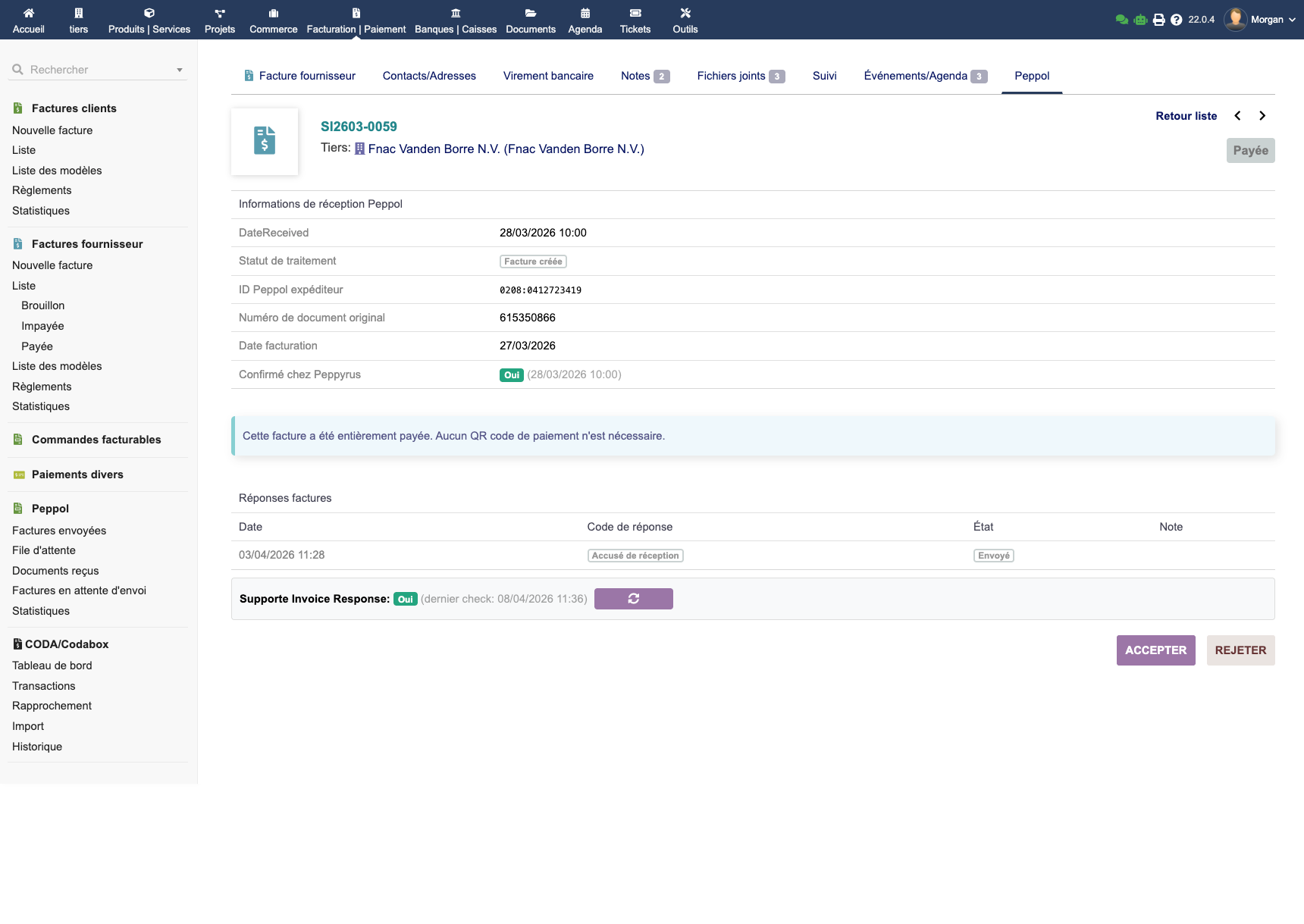 Fonctionnalité rare parmi les modules Dolibarr ! EMPeppol gère les réponses Peppol complètes :