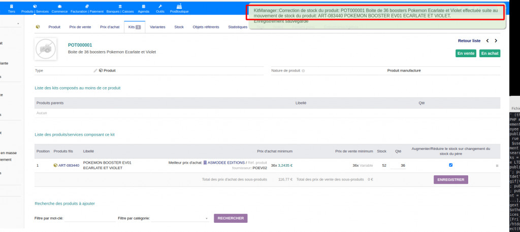 - Cette option désactive la possibilité de corriger manuellement le stock d'un Kit.
