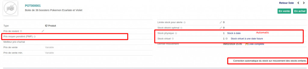 Calcul automatique du stock des produits parents en fonction des stocks des produits enfants.