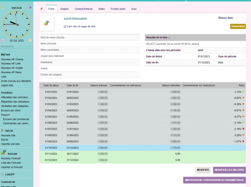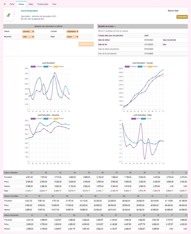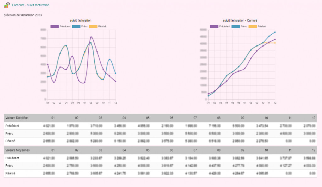 This module allows you to define a forecast and monitor your objectives from Dolibarr. Once the forecast has been defined, it is possible to follow its progress using graphs.