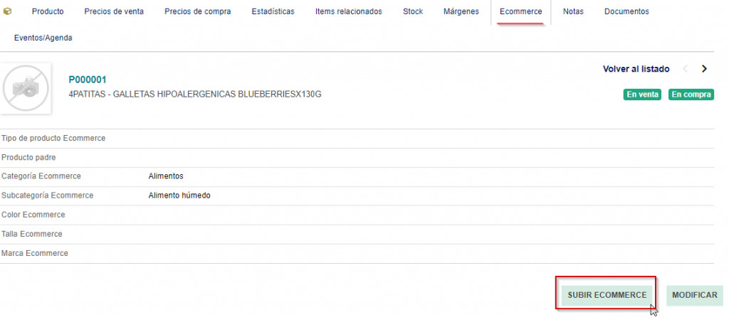 Dans la fiche produit de Dolibarr, mettez à jour manuellement les informations suivantes :