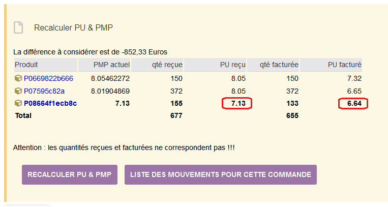 This module makes it possible to adjust the UP & WAP of purchased products, as well as taking into account additional costs concerning purchase invoices. This also makes it possible to highlight the differences between the amounts of the products received and the amounts of the products invoiced. Additional costs may correspond to customs, transport or approach costs.