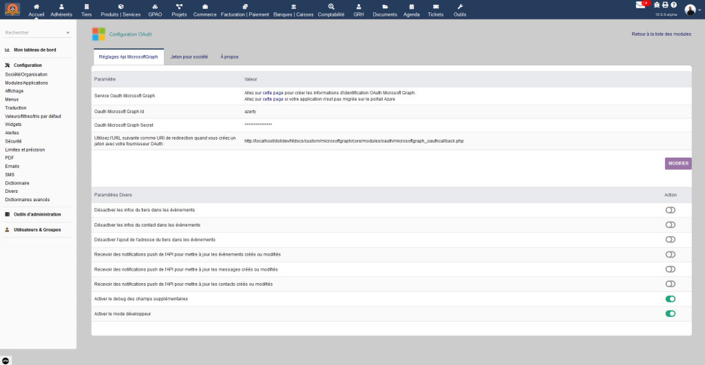 Le module est alors disponible et activable dans la liste des modules via l'espace de configuration.