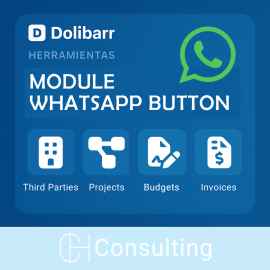 Ajoutez des boutons WhatsApp sur les fiches des tiers, projets, propositions et factures. Envoyez des messages directement depuis Dolibarr avec des modèles personnalisables et substitution automatique de variables.