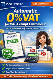 Automatically sets 0% VAT on invoices and proposals for tax-exempt customers. No manual intervention required.
