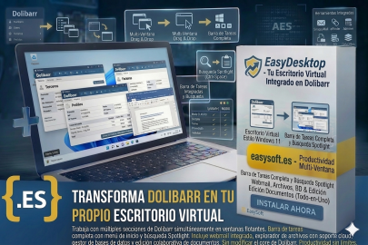Transform Dolibarr into a multi-window virtual desktop with taskbar, file manager (elFinder), DB manager (Adminer), webmail (SnappyMail), OnlyOffice, Spotlight search, PIN lock screen, widgets and 7 languages.