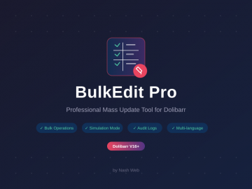Mass update Third Parties, Products, Contacts in Dolibarr. Advanced operations, simulation mode, detailed logs, batch processing. Dolibarr V16+.