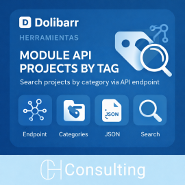 API-only module that adds REST endpoints to retrieve Dolibarr projects filtered by tags (project categories) by tag ID or tag name, and to list available tags with project counts.